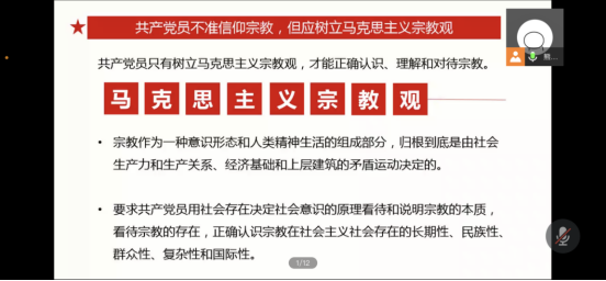 完成第一部分的学习后,熊苏雅对支部成员开展了题为“共产党员不能信教是政治纪律”的学习教育。讲述中指出“共产党员不准信奉宗教,应树立马克思主义宗教观”,强调 “共产党员不准信仰宗教,但应关心党的宗教工作、执行党的宗教政策”。
