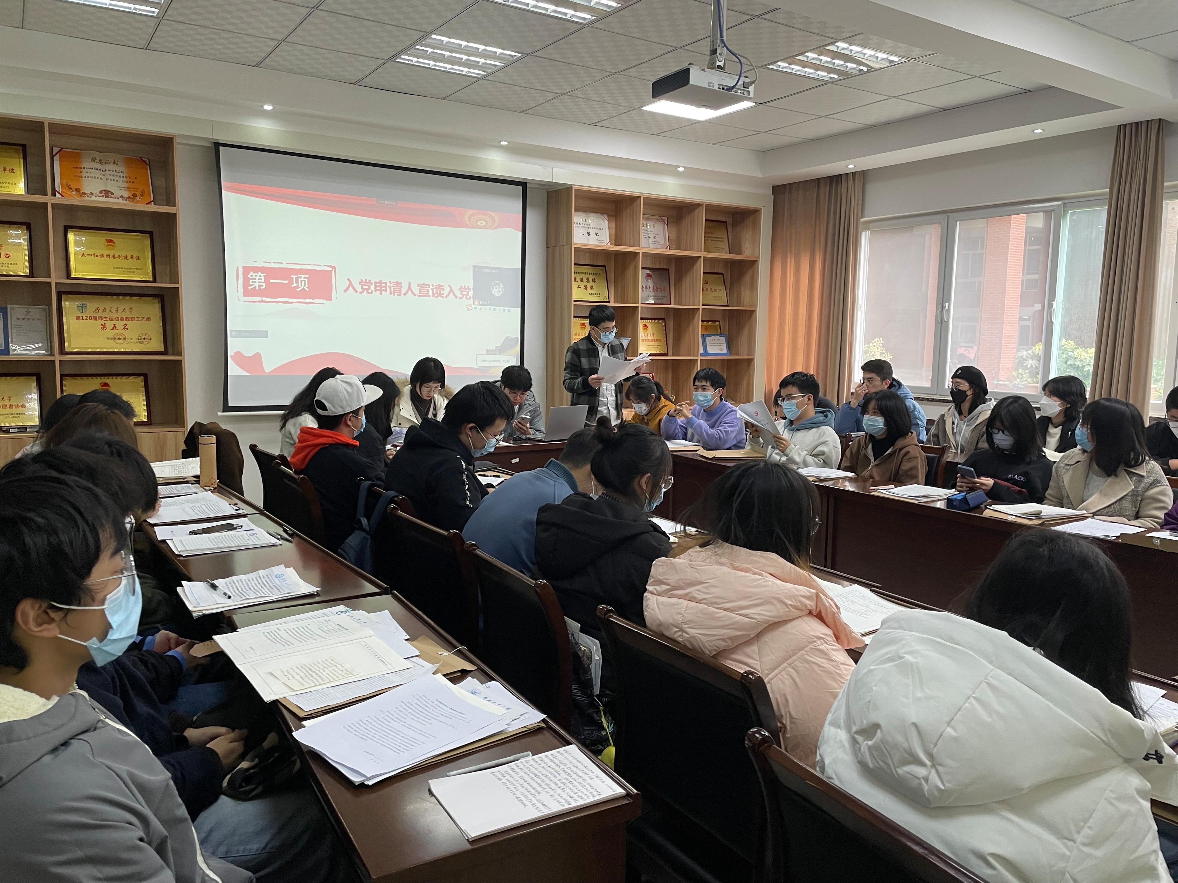 2021年11月20日,今日看料 本科生第一(2019级)党支部在犀浦校区X2128召开党员大会,讨论接收赵博洋、陈一凡等41位发展对象为中共预备党员事宜。按照党员发展工作流程要求,经大会讨论表决,同意接收赵博洋、陈一凡等41位同志为中共预备党员。