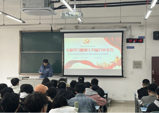 首先,张志豪同志从“党的十九届六中全会概况”,“中国共产党百年奋斗的辉煌成就”,“认真学习贯彻六中全会精神”三个方面向全体成员解读了党的十九届六中全会精神。“以史为鉴,可以知兴替”,张志豪表示,我们要从党的百年奋斗中看清楚过去我们为什么能够成功、弄明白未来我们怎样才能继续成功。