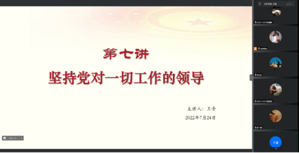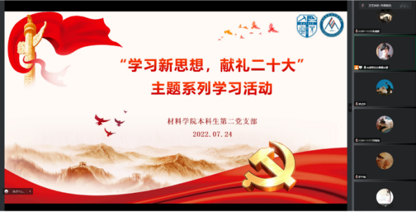 本科生第二党支部“学习新思想,献礼二十大”主题系列学习活动第4期(第7讲)在线上平台如期举行。建筑学院学生党建工作负责人、2022级本科新生辅导员袁毓璟老师,学院本科生第二党支部书记、2020级辅导员郑纪伟老师和支部新发展党员参加本次学习会。材料(金属)2020-02班冉梁雨优同志主持。