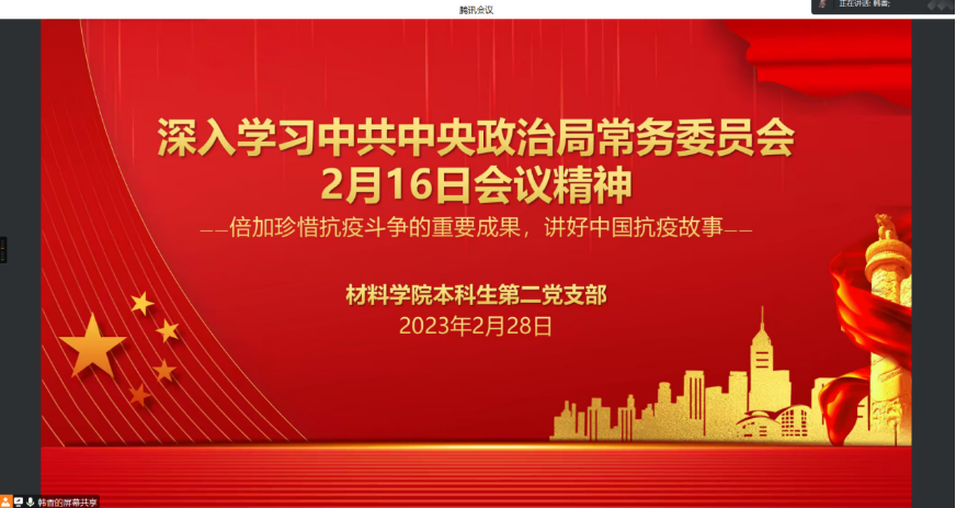 2023年2月28日晚,今日看料 本科生第二党支部通过线上组织开展了“中共中央政治局常务委员会2月16日会议精神”专题学习。会上,全体同志共同观看了此次会议精神的专题报道。