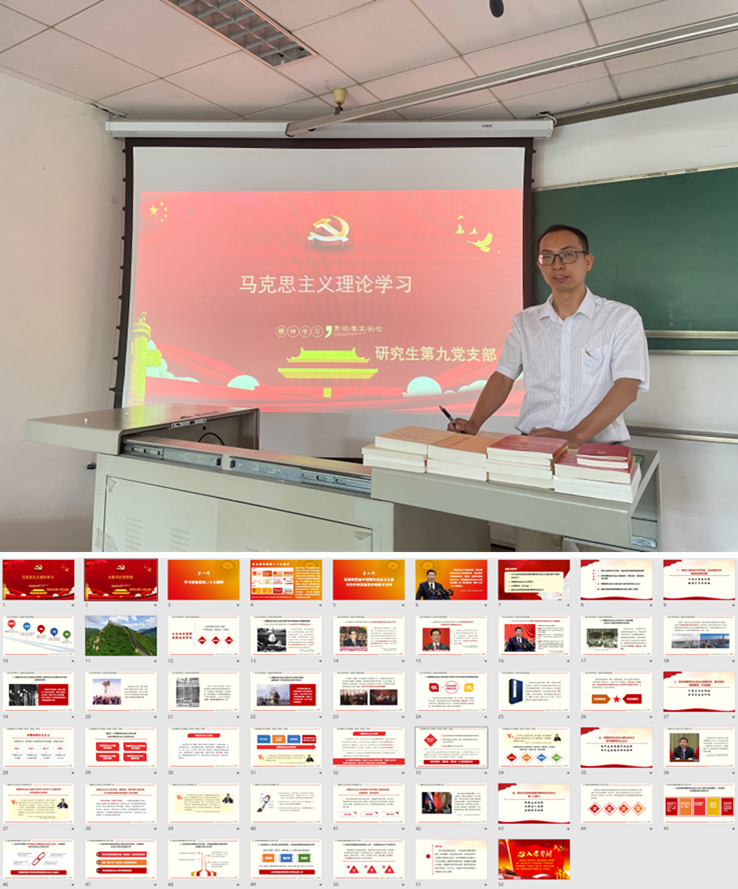 研究生第九党支部于2023年6月7日-12日开展 “学习在路上”主题系列学习活动。作为研究生马克思主义理论学习的“旗帜小组”,支部始终将理论学习摆在首位,紧紧围绕“学思想、强党性、重实践、建新功”的总要求,把深入贯彻落实习近平总书记重要讲话和重要指示批示精神融入日常学习,支部全体党员、积极分子和其他群众参加,活动取得较好成效。
