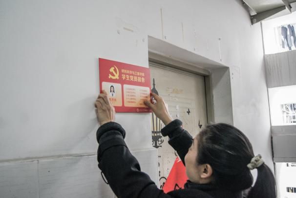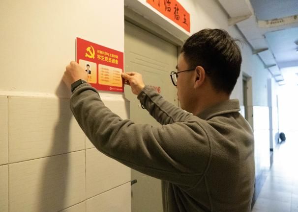 仪式结束后,与会同志共同前往宿舍进行挂牌。老师们亲手为各位党员挂上属于自己的身份标识,叮嘱大家时刻铭记党员义务和责任,发挥“四不五带头”榜样作用,用自己的实际行动为其他同学作好表率。