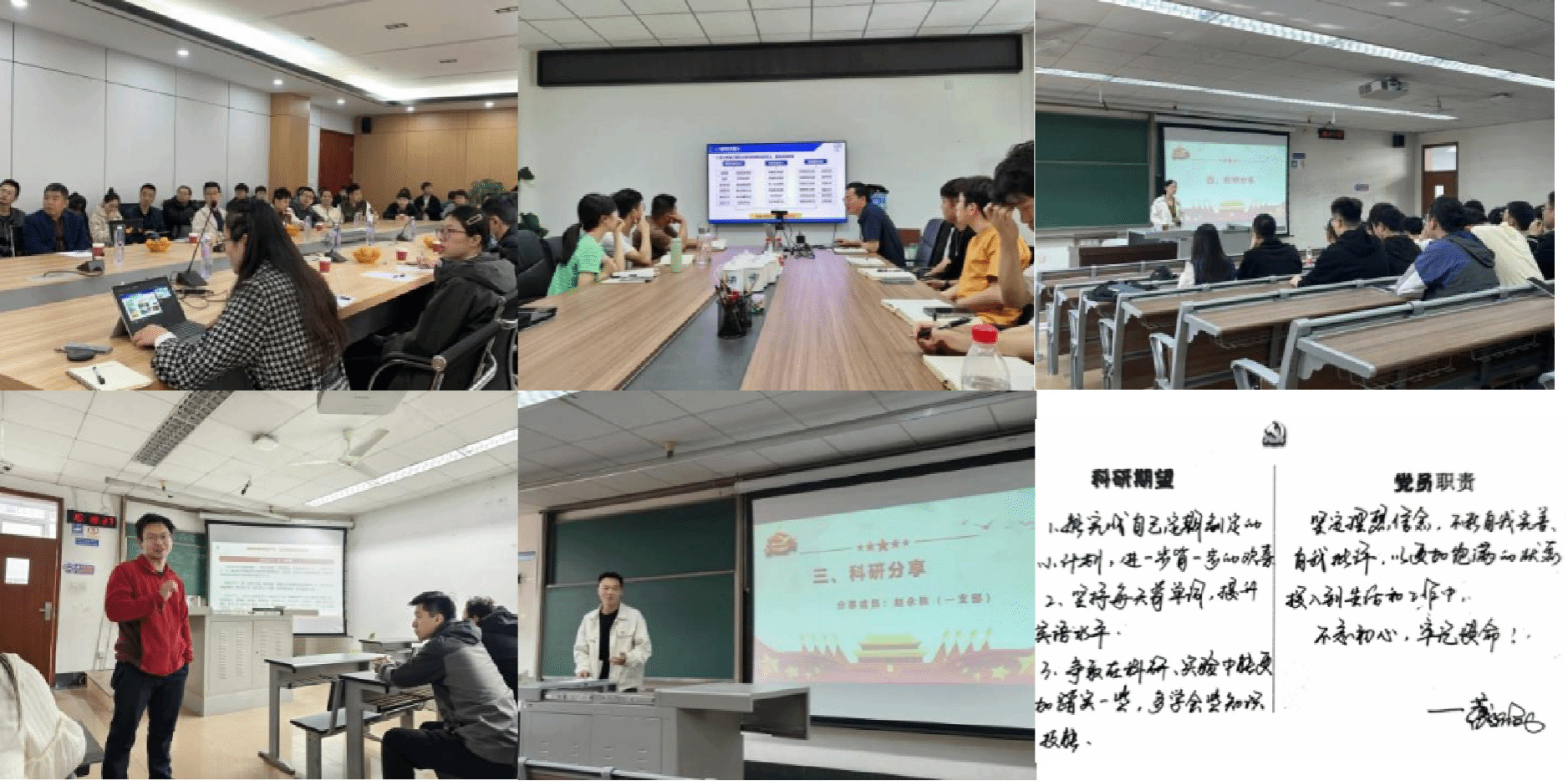 构建“党建+科学研究”模式,推进党建工作与学术科研深度融合。研究生各党支部立足自身实际,策划组织学术沙龙,充分发挥学术科研先锋模范带头作用。开展“师生共话”主题活动,邀请科研团队教师党员追忆入党初心,介绍最新科研成果、分享学术感悟,有效提升教师党员关心、支持研究生党建和科研工作的积极性与实效性。搭建朋辈交流平台,邀请优秀研究生党员分享科研经验,有针对性地为低年级同学答疑解惑,启发科研思维,提升学术水平,引领研究生积极投身中国式现代化伟大实践,为推动新质生产力加快发展贡献青春力量。近两年来,研究生党支部涌现出70余名校级荣誉获得者;支部成员共发表高水平文章130余篇、各类专利50余篇;支部党员参与国家重点研发计划、国家自然科学基金项目等国家级项目6项、横向科研项目近50项,形成了党建与科研融合互促的良好氛围。
