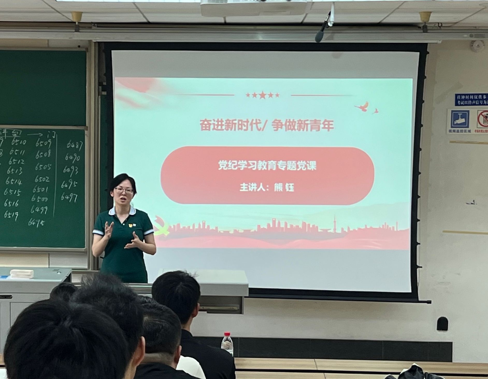 在决赛开始之前,熊钰首先对各位晋级决赛的同志表示祝贺,随后作“奋进新时代,争做新青年”党纪学习教育专题党课。熊钰带领同学们逐条逐字地学习了《中国共产党纪律处分条例》第六章内容,指出政治纪律是最重要、最根本、最关键的纪律。通过讲述具体案例,她强调,政治生命是党员信仰的选择,要爱惜政治生命,就是要讲政治、守纪律、真作为。作为一名合格的学生党员,应当深刻认识忽略党纪、违反党纪的严重危害,强化自觉守纪意识,带头严守法律法规和校规校纪。