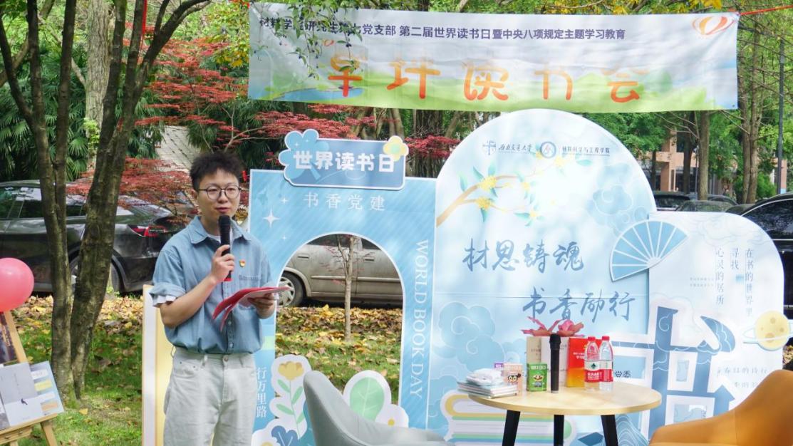 研究生第七党支部以“材思铸魂,书香励行”为主题,通过草坪读书分享、旧书换礼与知识竞答等多元形式深化党建实践。师生们在陈能宽院士雕像旁共读经典、畅谈感悟,将闲置书籍经公益组织送往山区学校,既倡导资源循环利用,又为教育公平助力。活动融入音乐表演和八项规定专题问答,让理论学习生动可感。党员们表示,未来将坚守科研初心,把环保理念与奉献精神融入日常,用实际行动展现出新时代青年担当。