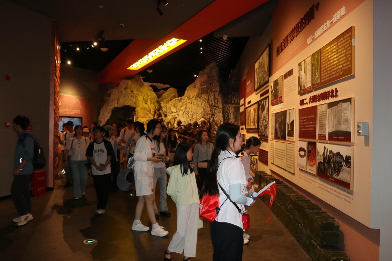 随后,在讲解员的带领下,党员同志们先后去往红军长征纪念馆陈列馆、红军亭、石塔区苏维埃旧址、南宋石塔、四川红军长征数字展示馆。讲解员细致专业的讲解,与大量的照片和抗战期间的文物,使师生党员感受到了战争的无情与红军顽强的意志,沿路陈列了很多当时红军石刻的标语,述说着当年的故事,蕴含红色基因的石塔寺,珍藏着这片红色大地的故事,等待人们缓缓阅读。四川红军长征数字展示馆中采取多媒体和数字技术相结合的展示技术,再现红军长征的历史场景,师生身临其境,更好地了解川军抗战期间的事迹,感受红色文化。